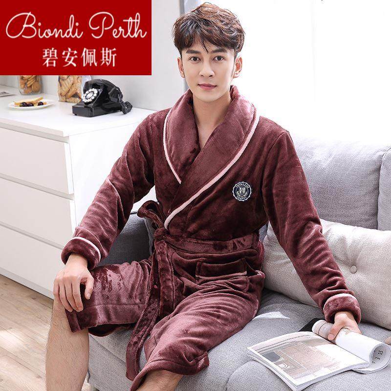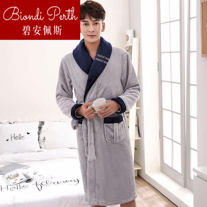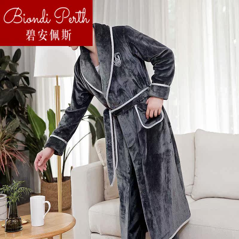 Men's winter sleeping robes thickened autumn and winter long style add suede flannel winter pyjamas winter coral suede bathrobe 1224b-Taobao