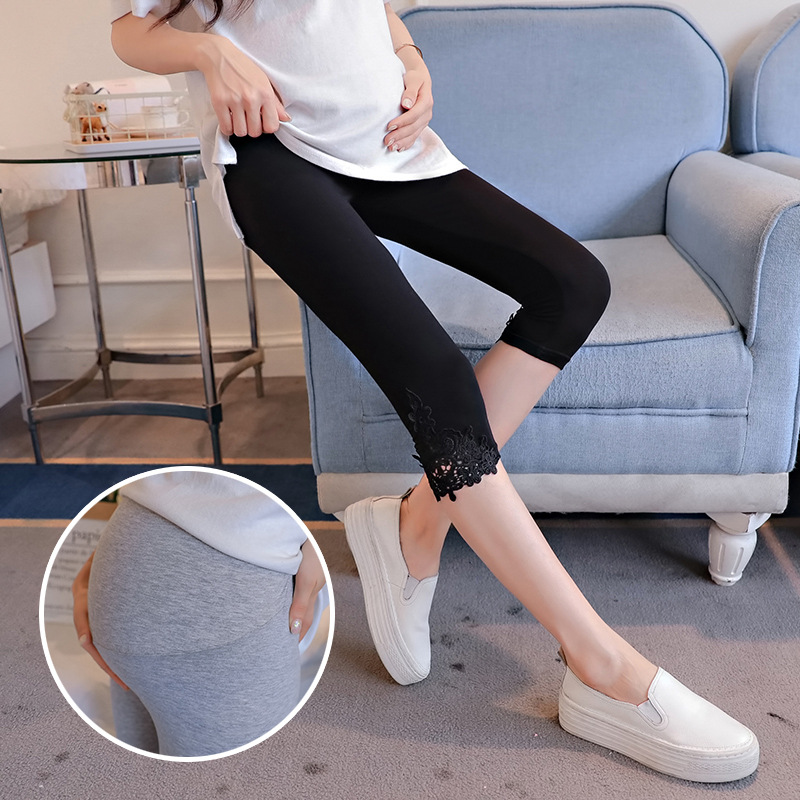 Extremely Fast Shipping Pregnant Woman Beats Bottom Pants Summer Modale Splicing Lace Seven Pants 2023 New Pregnant Woman Pants Xia-Taobao