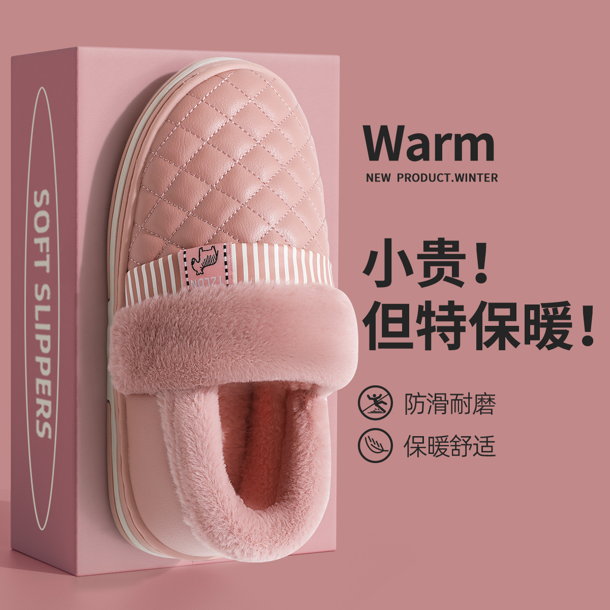 Waterproof cotton slippers female section 2023 new autumn and winter home warm bag with thick bottom men gush outside wearing cotton shoes-Taobao