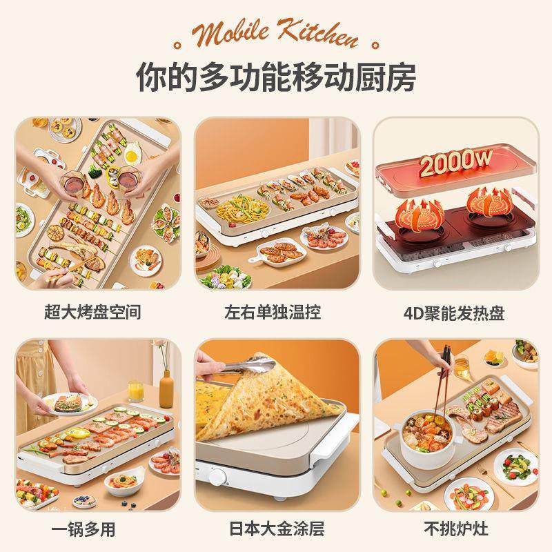 New Roast Pan Multifunction Poly Hi Electric Grill Pan Cuisine Pan Home Smoke-free Barbecue meat Boiling Oven Fried Fish Pan-Taobao