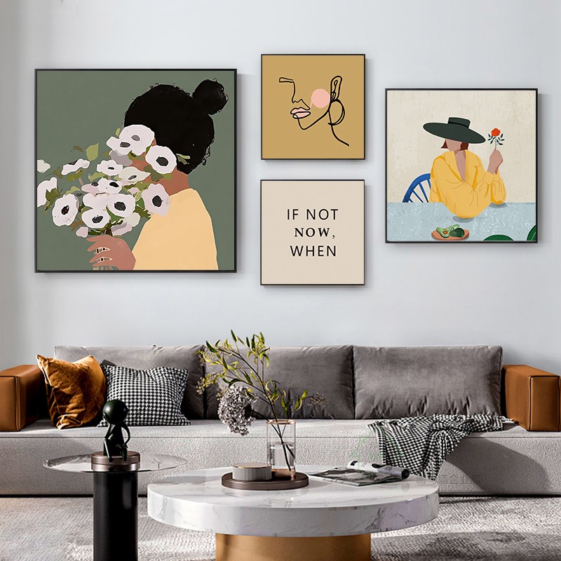 Small frescoed living room sofa Background wall decoration painting Little crowdart Deco Art Deco bedroom bedside retro composition hanging painting-Taobao