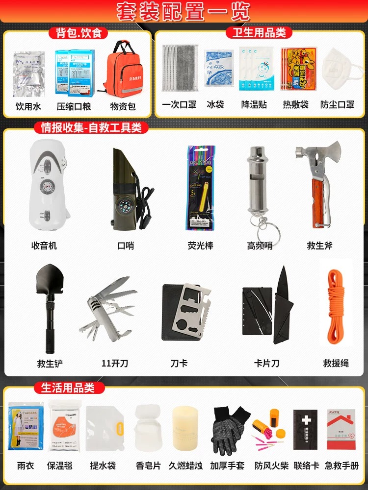 Earthquake emergency rescue package People's combat readiness Home Lifesaving Bag Survival Kits Family Emergency Material Reserve Escape Bag-Taobao