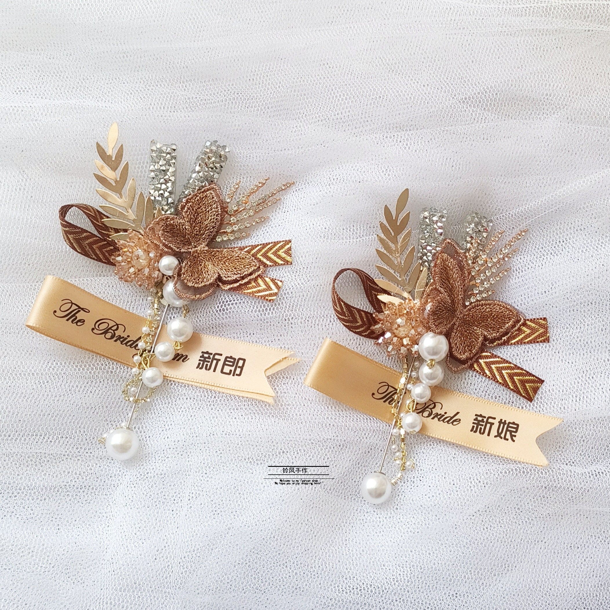 Water drill butterfly single breasted water drill butterfly wrist flower water drill butterfly bridal water drill butterfly groom water drill butterfly set of water drill butterfly bride groom