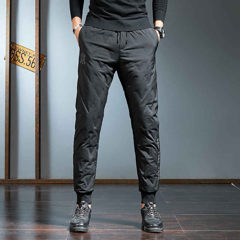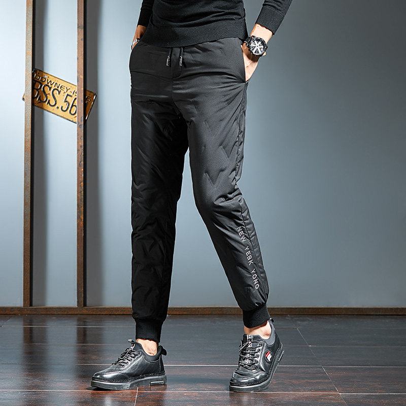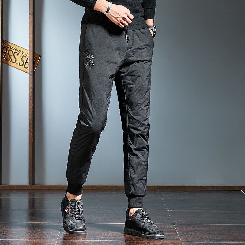 Down Pants Men's Autumn Winter 2023 New Tide Cards Thickened Warm Duck Suede Windproof Waterproof Loose Bunch Foot Casual Pants-Taobao