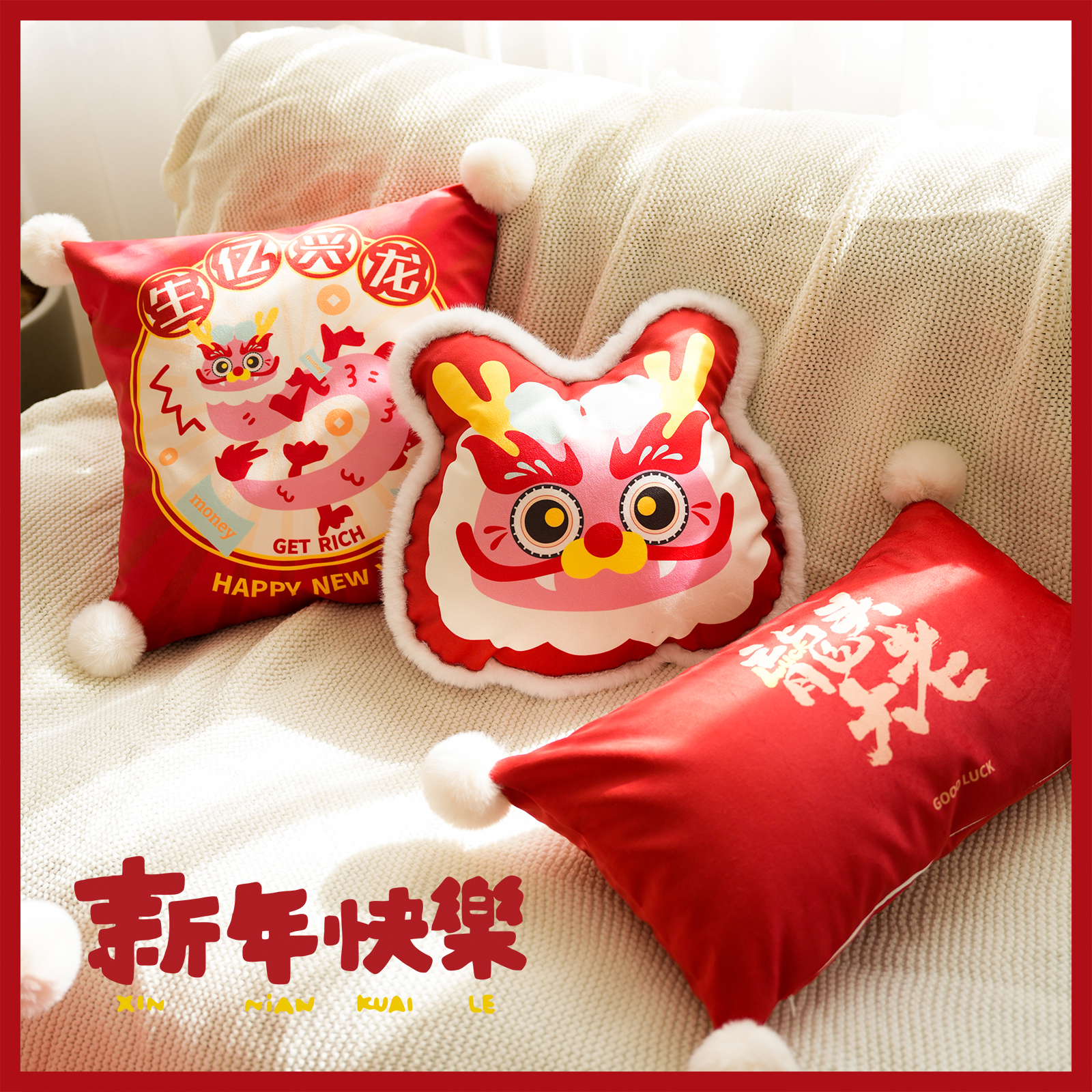 Dragon year Pillow Chinese Vintage New Year Red Atmosphere leaning on pillows Living room sofa Pillow Bed headboard Pillow In-car-Taobao