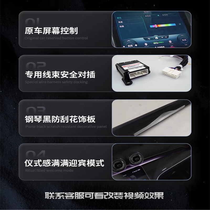 Front and rear turbo luminous air outlet (7)★packs mount A column 4D rotary tenor (2)★packs mount four-door midtone luminous horn hood (4)★bag mounted active atmosphere light★Pack installation