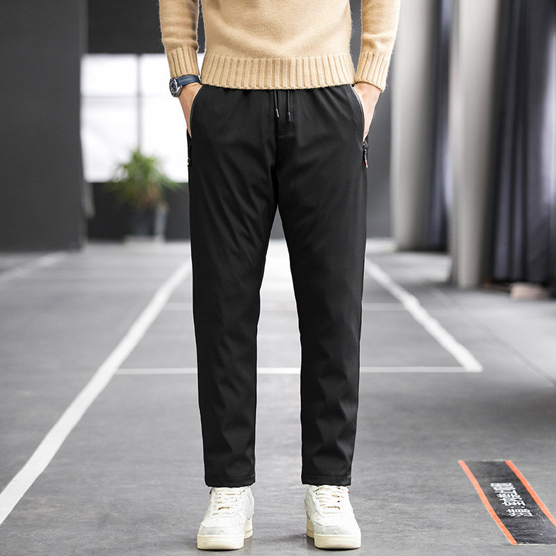 Down Pants Men's Autumn Winter 2023 New Tide Signs Thickened Warm Duck Suede Sports Pants Loose bunches Casual Long Pants-Taobao