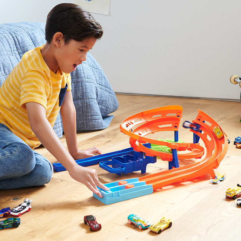 (self-employed) Wind-fire wheel track Fire Spicy Little Sports Car Racing Track Stunt Back Ring Racing speed Runway Discoloration Dolly Car Wash-Taobao