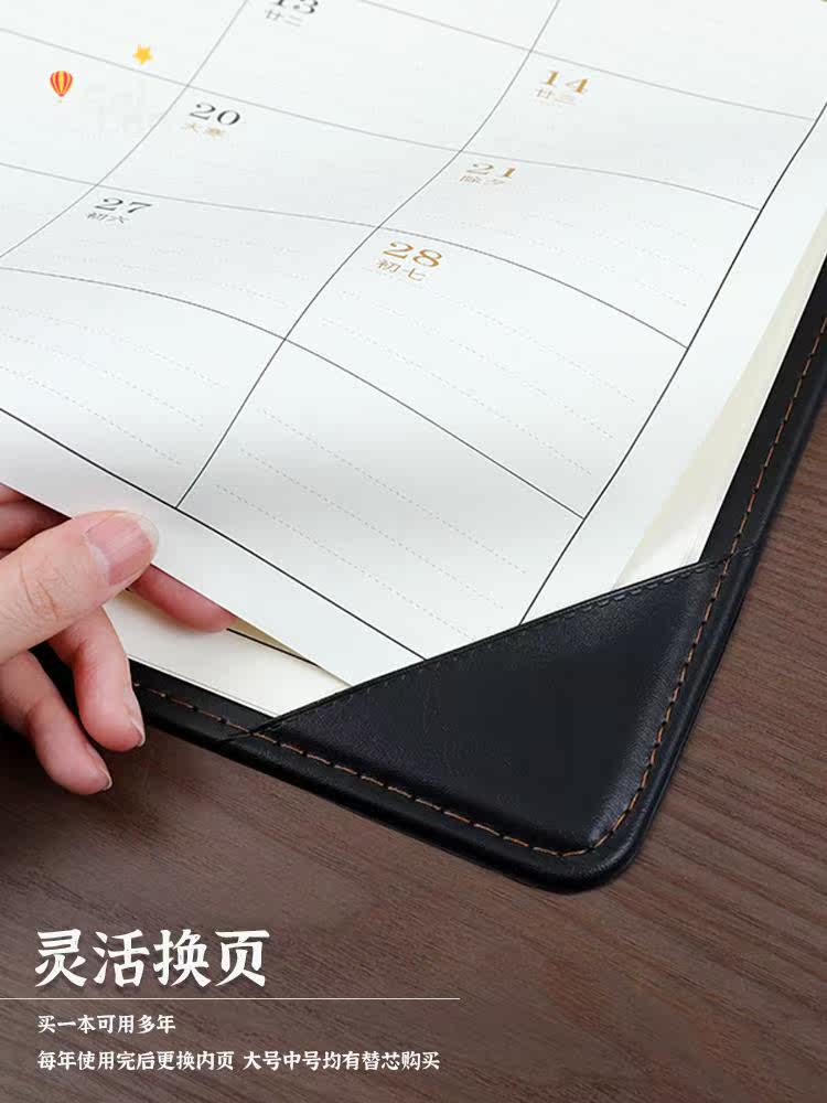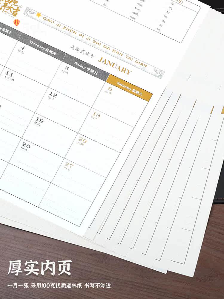 New 2024 Dragon Year Calendar Large Class Desktop Memory Desk Calendar Leather Calendar Mat Brief Notepad Small Swing Piece Business Office Large Number Plaid Schedule Card Schedule Month Calendar Custom Set-To-Taobao