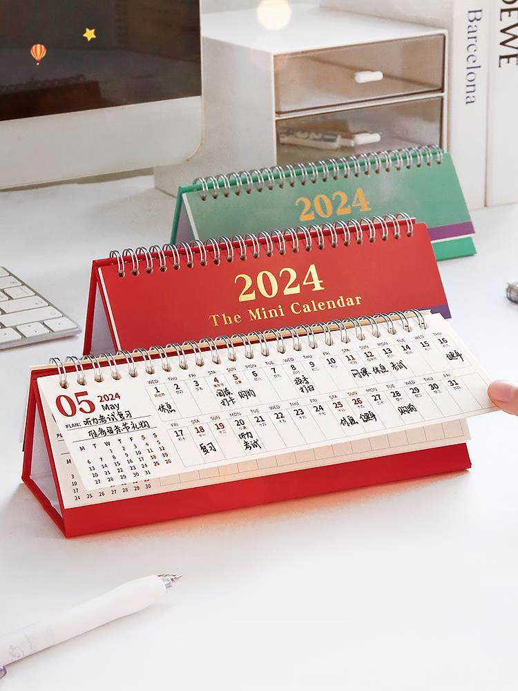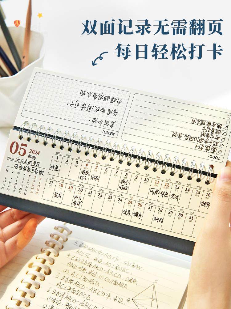 2024 Punch Card Calendar Minimalist Business Desktop Coil Mini Desk Calendar Daily Plan Target Strip Lunar Calendar Disciplined-Taobao