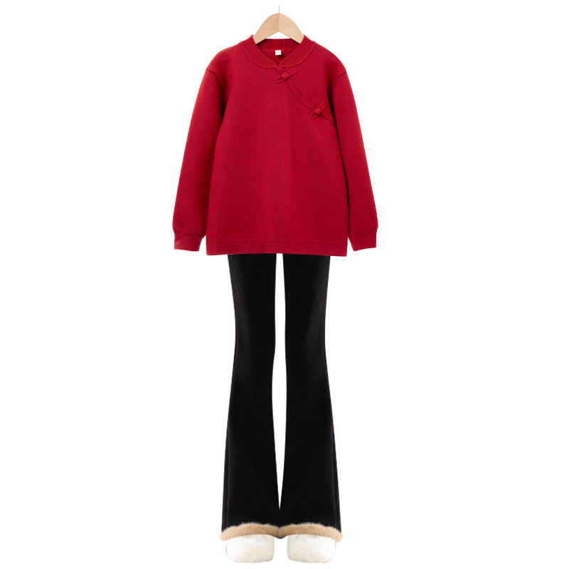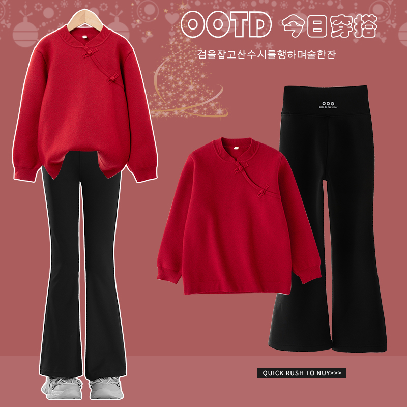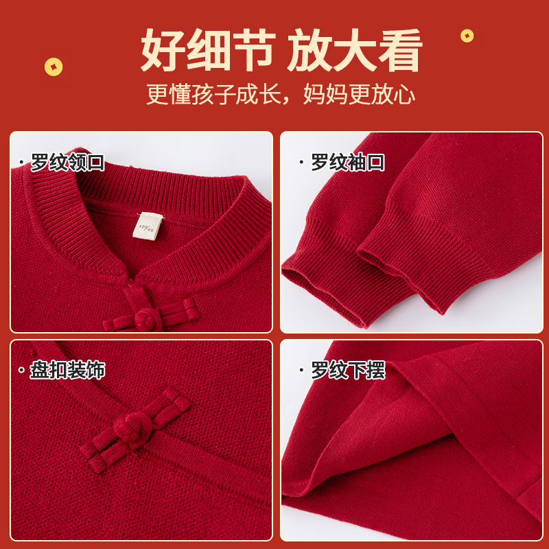 Girl's New Year suit autumn and winter Children's new Chinese style national wind red sweater with velvet beiyen-year clothes great boy trendy-Taobao