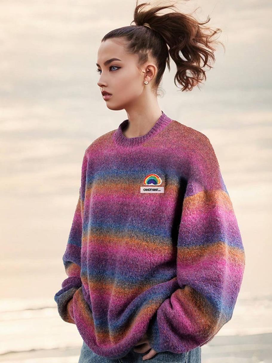 (Same model for William Chan) CANOTWAIT round neck rainbow sweater men's and women's autumn and winter style ins sweater tops