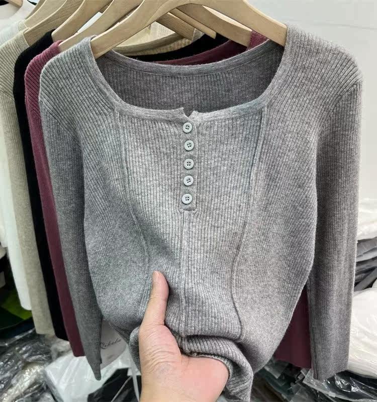 Square collar Long sleeves Knitted Sweatshirt Woman Blouse 2023 Autumn Clothing New Design Sense for a Riding Undershirt Sweater-Taobao