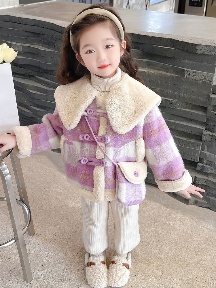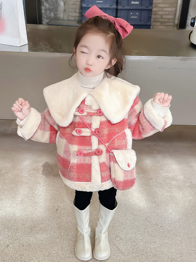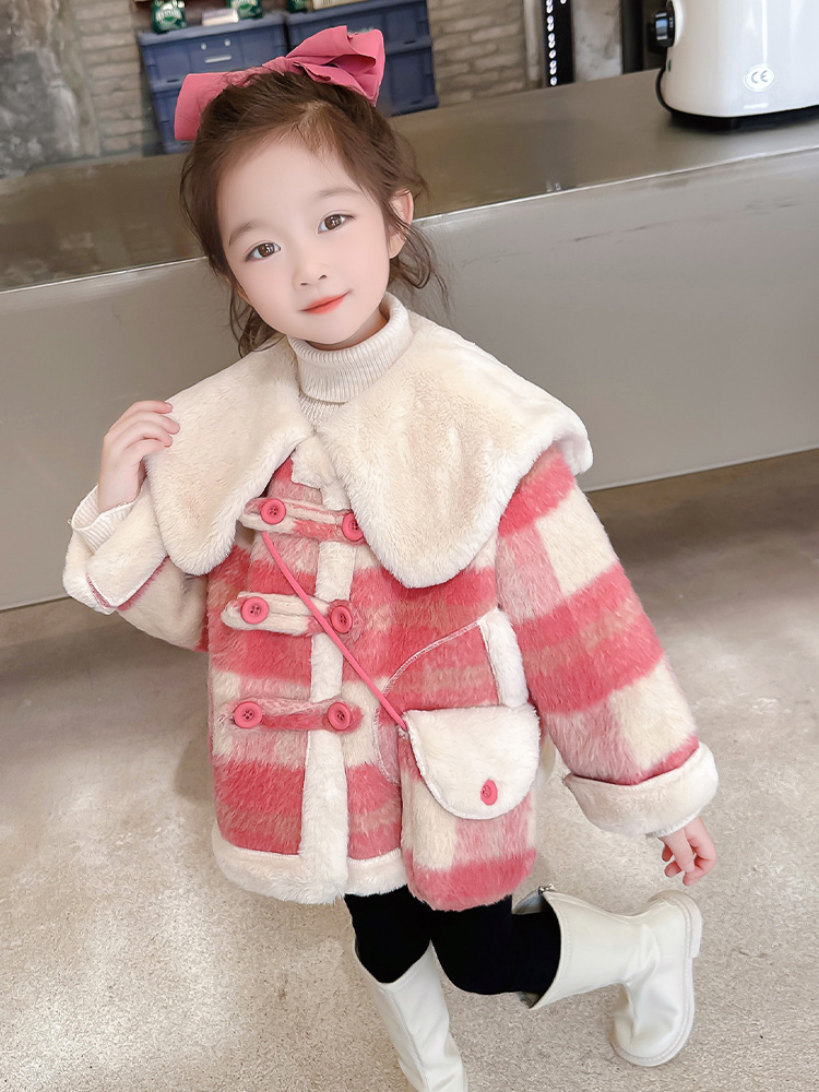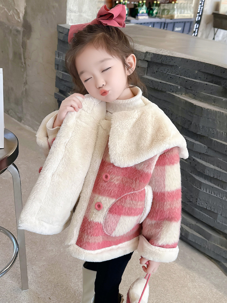 Children's college Wind-integrated suede jacket Girl with short section Son Coat Foreign Air Baby Plus Suede Thickened Blouse Winter Clothing