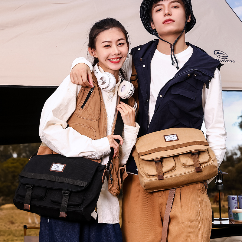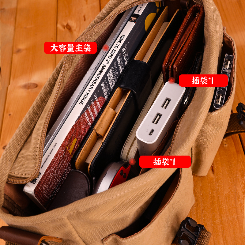 Canvas Skew Satchel Bag Men's Large Capacity Brief Mailbag Casual Junior High School Student Bag Single Shoulder Bag Girl's satchel-Taobao