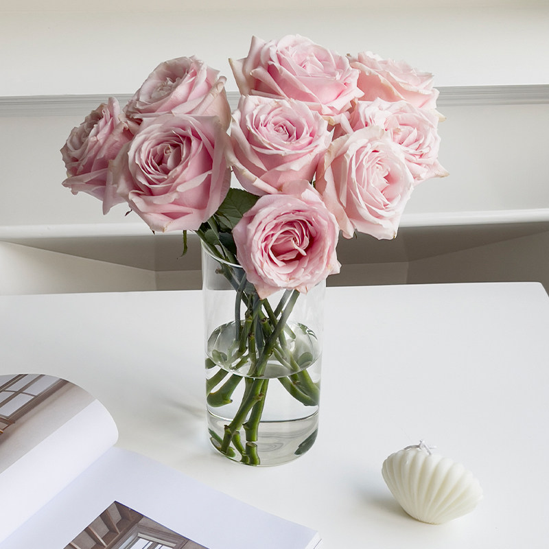 Vase Pendulum pieces Living Room Flower Arrangement Glass Advanced Sensation Transparent Water Nourishing Hydropony gold Gin Rose Brief the straight cylinder Large-Taobao