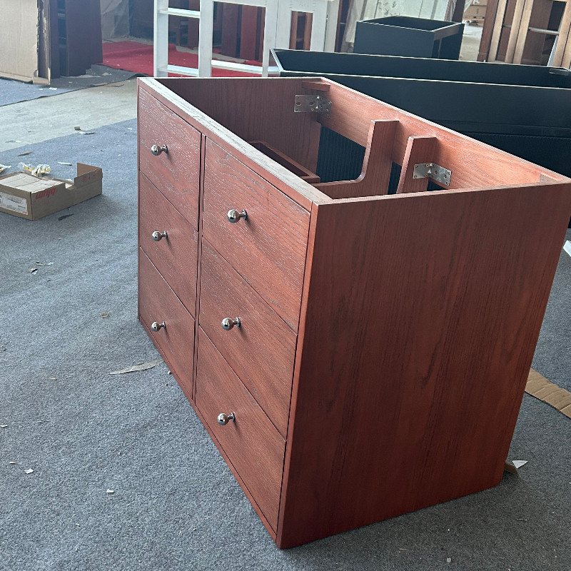 Middle and ancient wind solid wood bath cabinet combined ceramic integrated basin handwashing table retro baking varnish custom bathroom cabinet washstand-Taobao