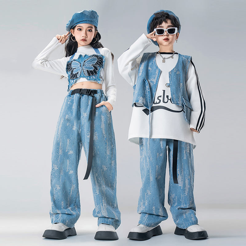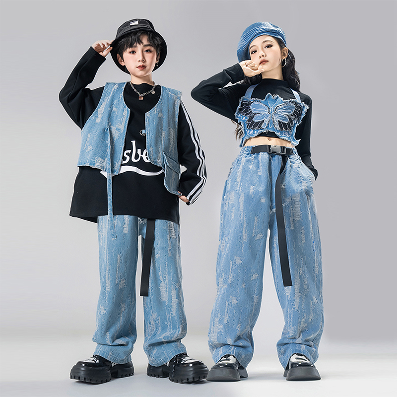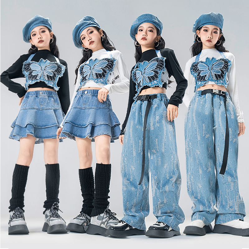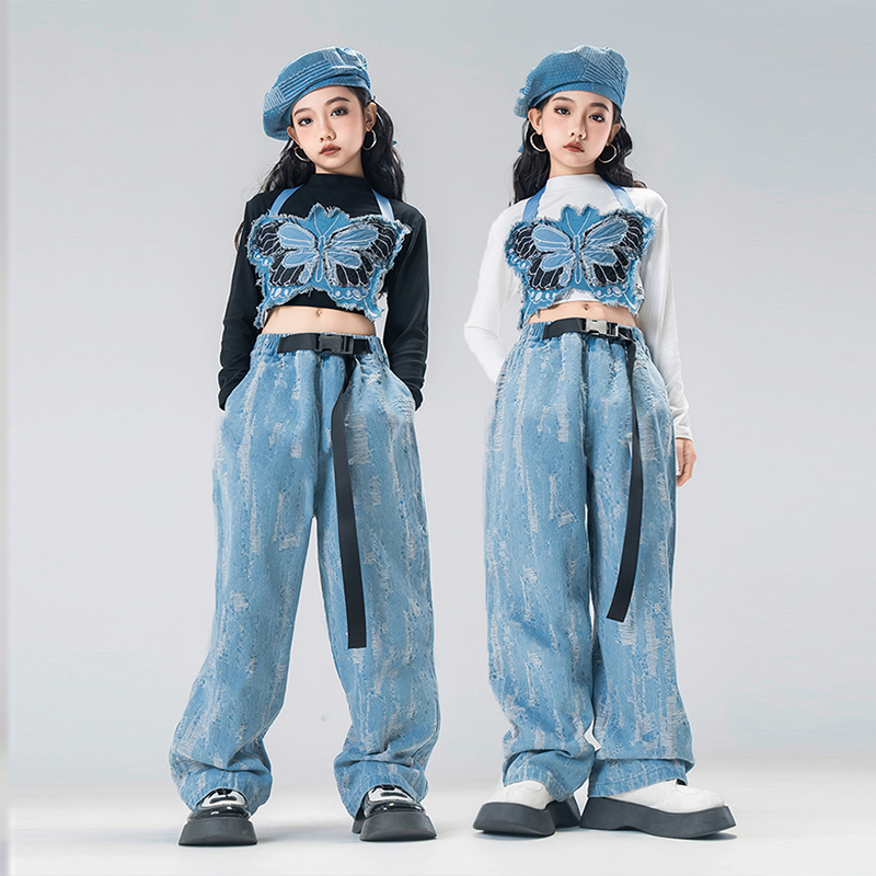 Denim Butterfly Cowboy Butterfly Belt Broken Hole Denim Trousers Denim Butterfly Pure White Long Sleeve Bottom Shirt Waist Belt Broken Hole Denim Long Pants Denim Butterfly Pure White Long Sleeve Bottom Shirt Waist Belt Breaking Hole Cowboy