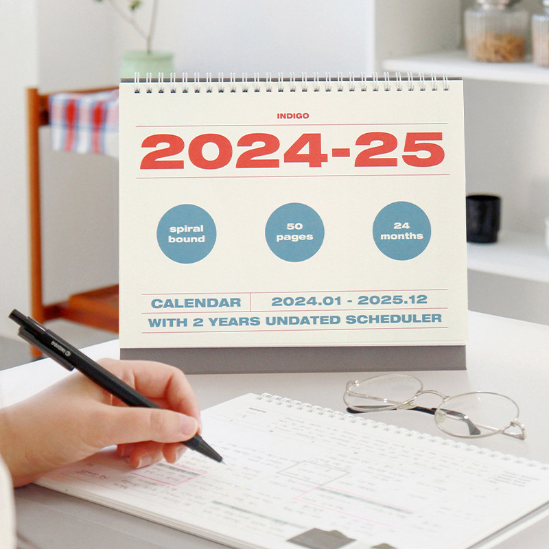 South Korea indigo brief frescoed 2024-25-2-year desktop planning desk calendar-calendar lunar calendar-Taobao