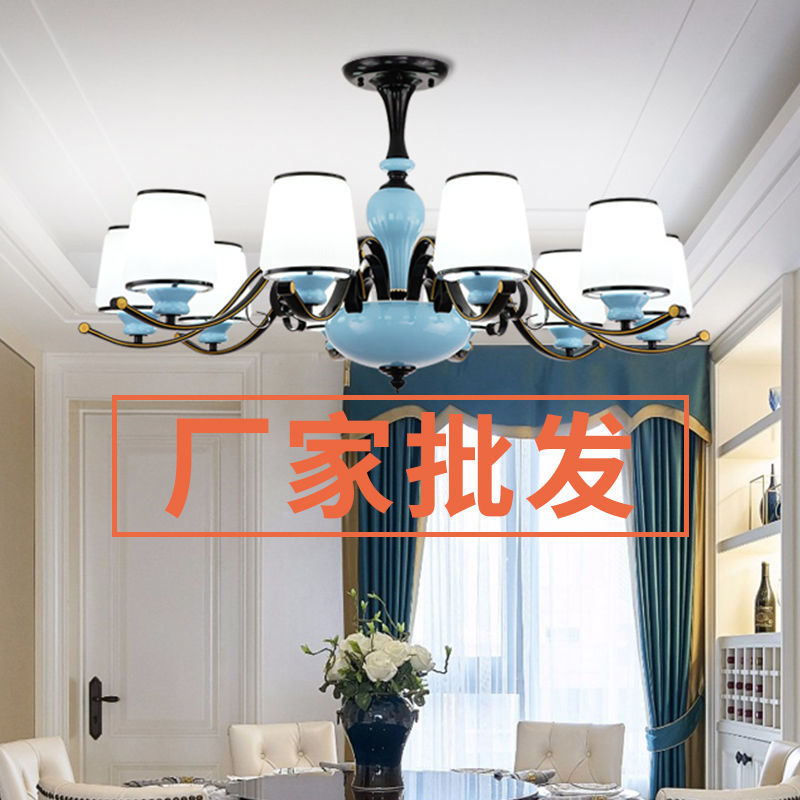 American chandelier luxury living room light Restaurant light European-style modern minimalist atmospheric bedroom Nordic Zhongshan Lamp ceramic-Taobao