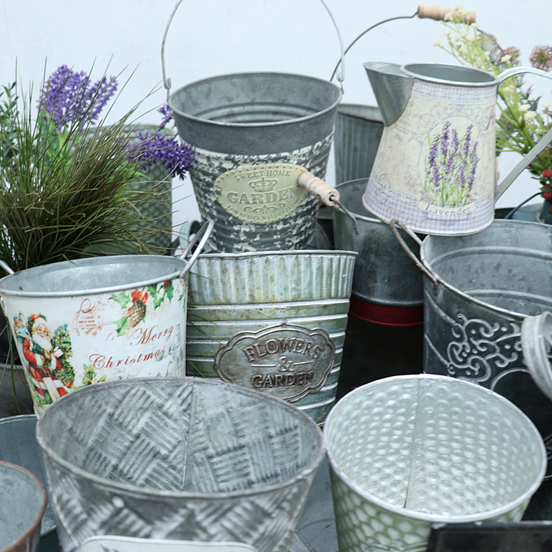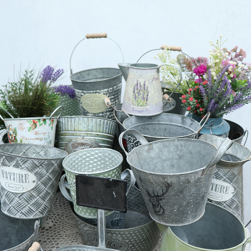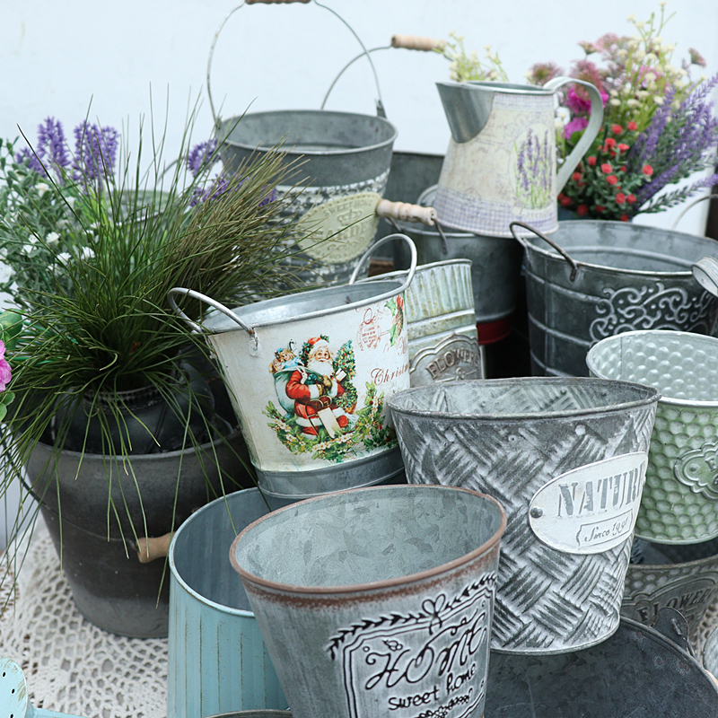 Retro made of old Tin Dried Flowers Flower Arrangement Bucket Fields Green Plant Iron Art Flower Pots Indoor Flower Shop Creative Floral Decorations-Taobao