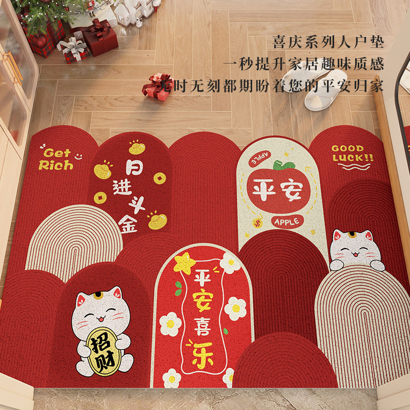 2024 New Year's Gate Mat Entrance Doorway Silk Ring Footbed Entrance doormat Mat Genguan Red-resistant carpet 2556-Taobao
