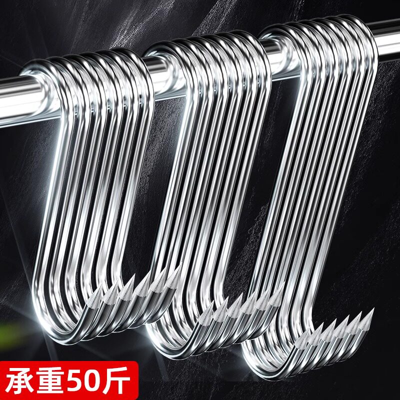 Rameat Hooks S Type Stainless Steel Dried Pork Hook Grilled Duck Sausage Special Solid Plus Rough Big Horn S Hook-Taobao