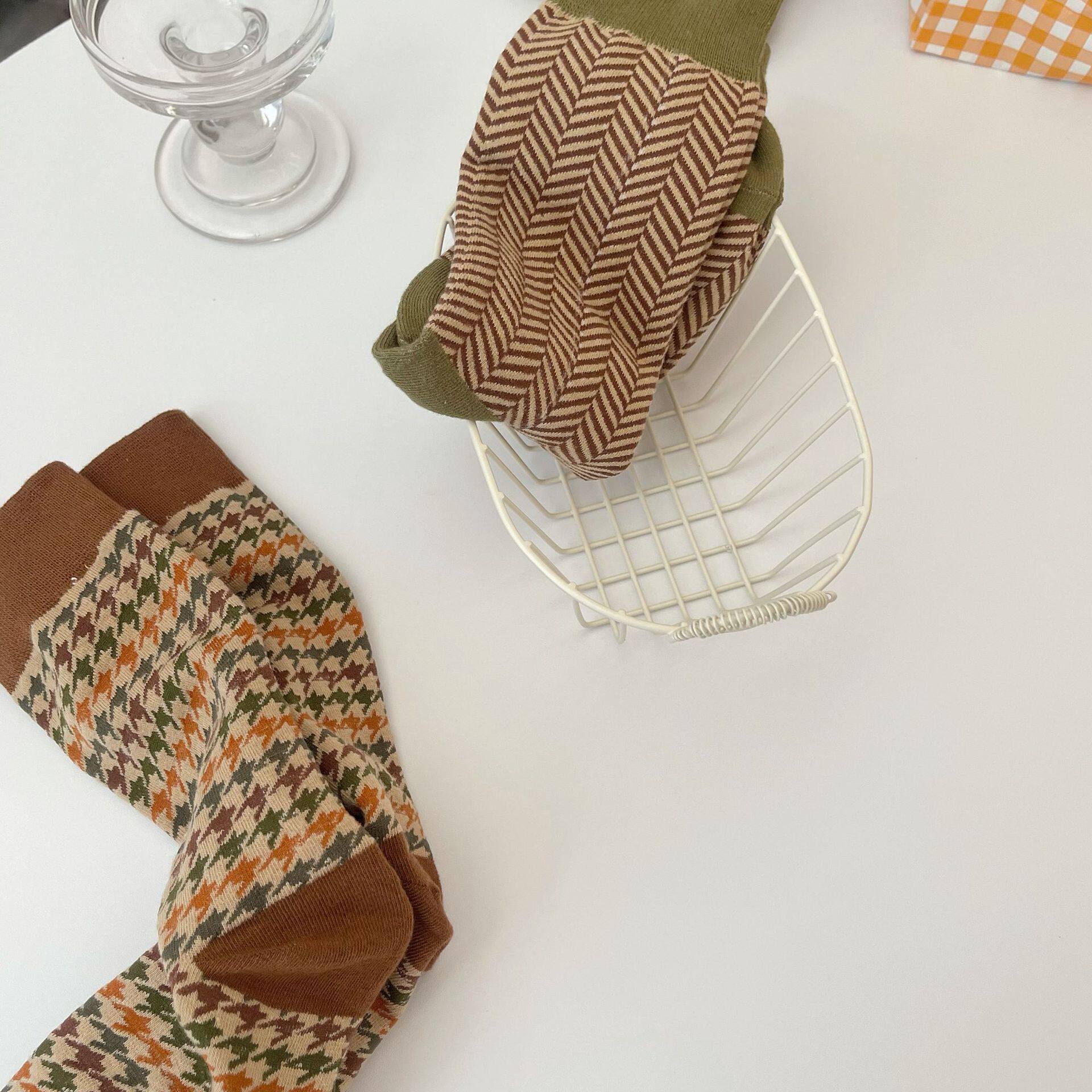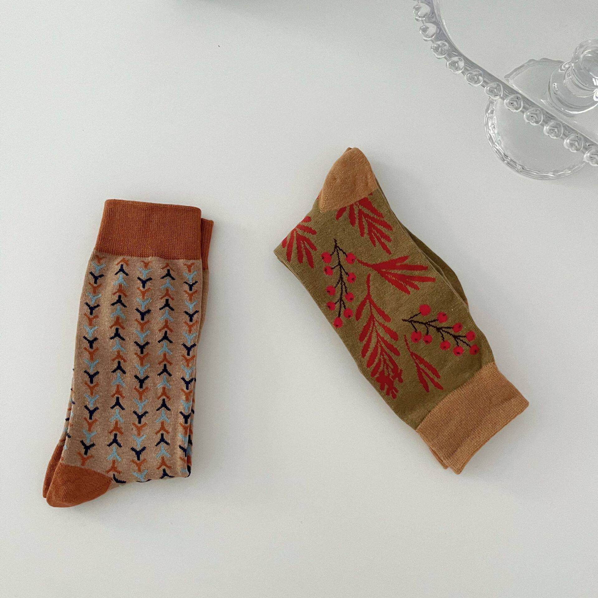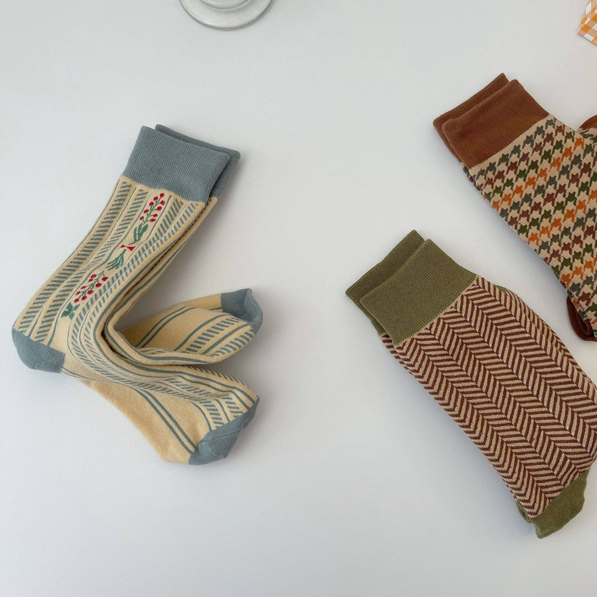 Autumn-winter French style retro cotton middle cylinder Sox Sweet college winebird Ginglinger Inn Wind Day Striped Socks-Taobao
