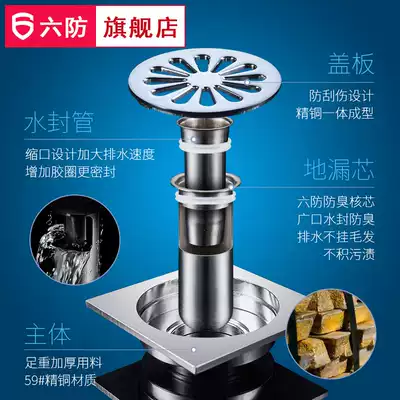 Six anti-copper deodorant and insect-proof floor drain Shower powder room balcony washing machine dual-purpose three-way deodorant floor drain