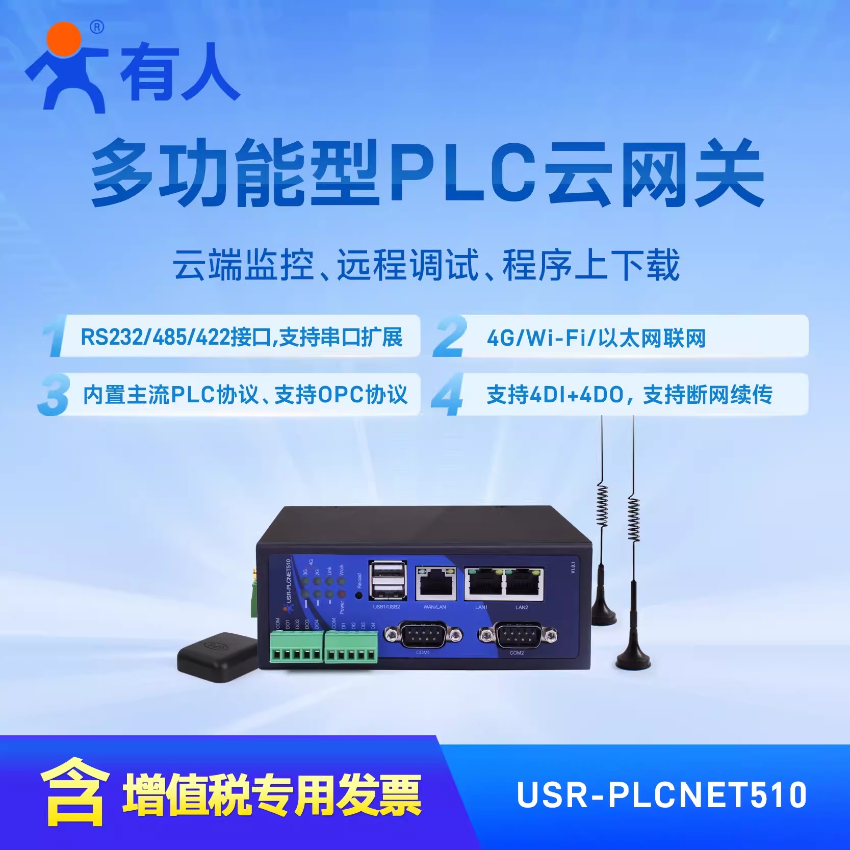 Someone USR-PLCNET510PLC cloud gateway edge computing 4G cloud-end monitoring transfer remote debugging-Taobao