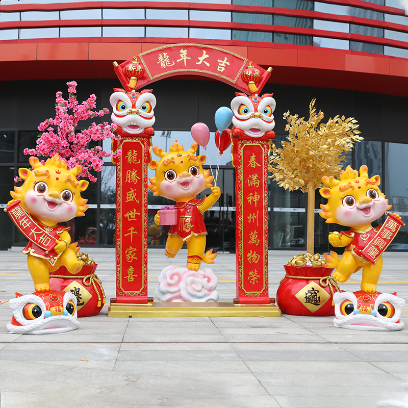 New Year's Zodiac sculptures 2024 Spring Festival Longyear Cartoon GRP Mascot Mall Sale of the Department Park Pendulum Pieces-Taobao