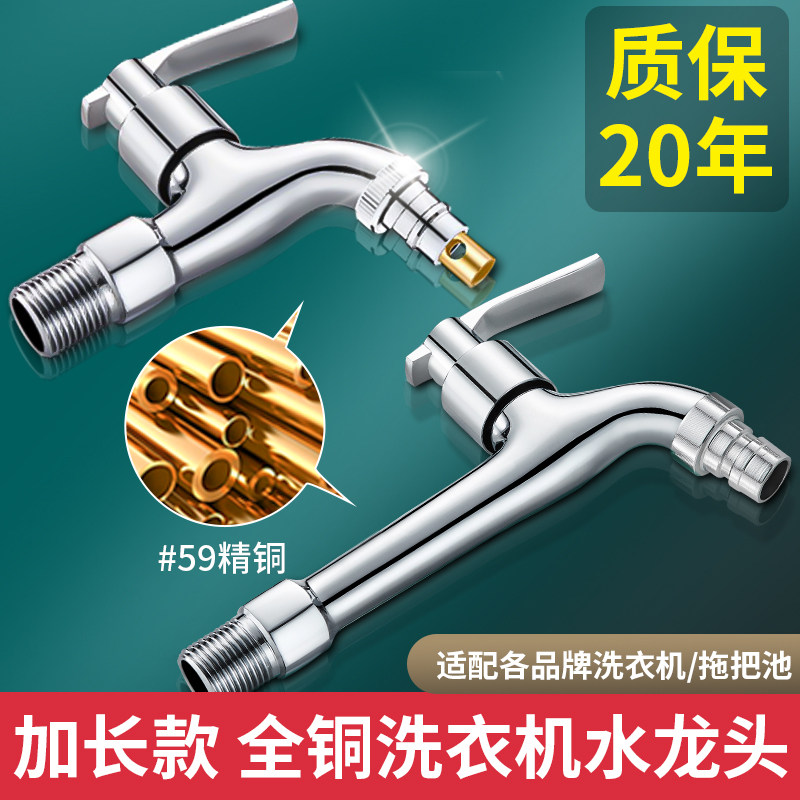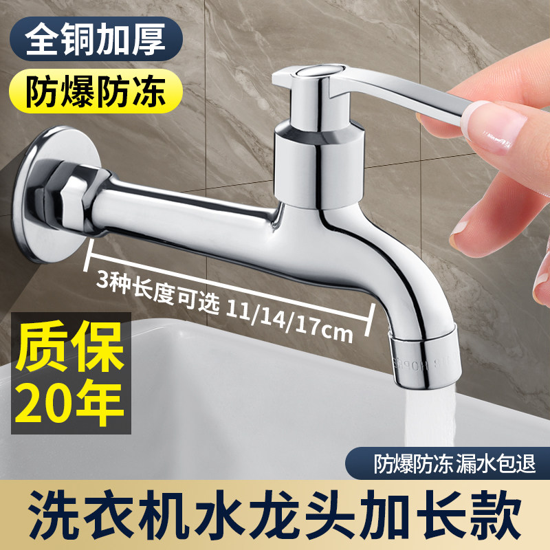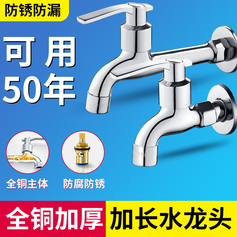 Single-cold tap lengthened special tap water into wall-style full copper 4-minute washing machine mop pool balcony Home-Taobao