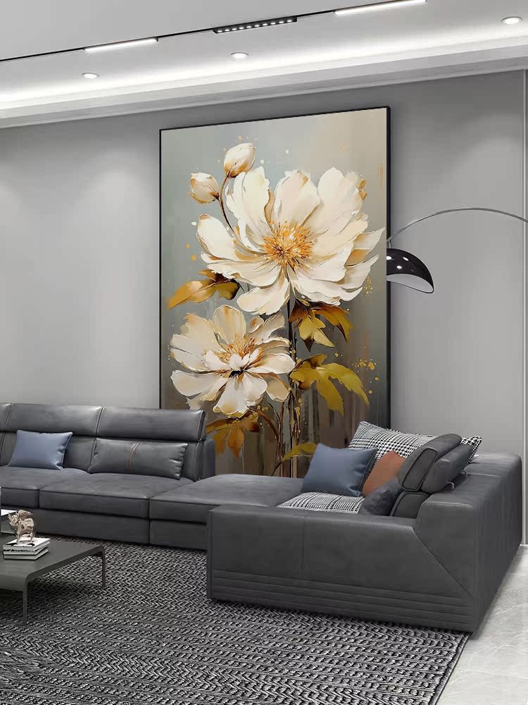 Living room Abstract golden peony flower hand-painted oil painting sofa Background wall Stereo decoration painting Xuanguan Advanced hanging painting-Taobao
