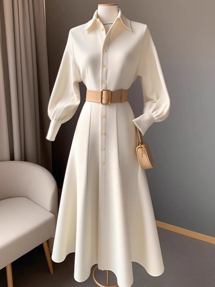 Father-style High sense Temperament POLO Collar Long Sleeve Long Skirt Autumn Winter New sister wearing a hitch-skinny dress lady-Taobao
