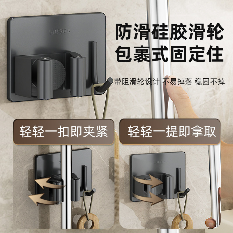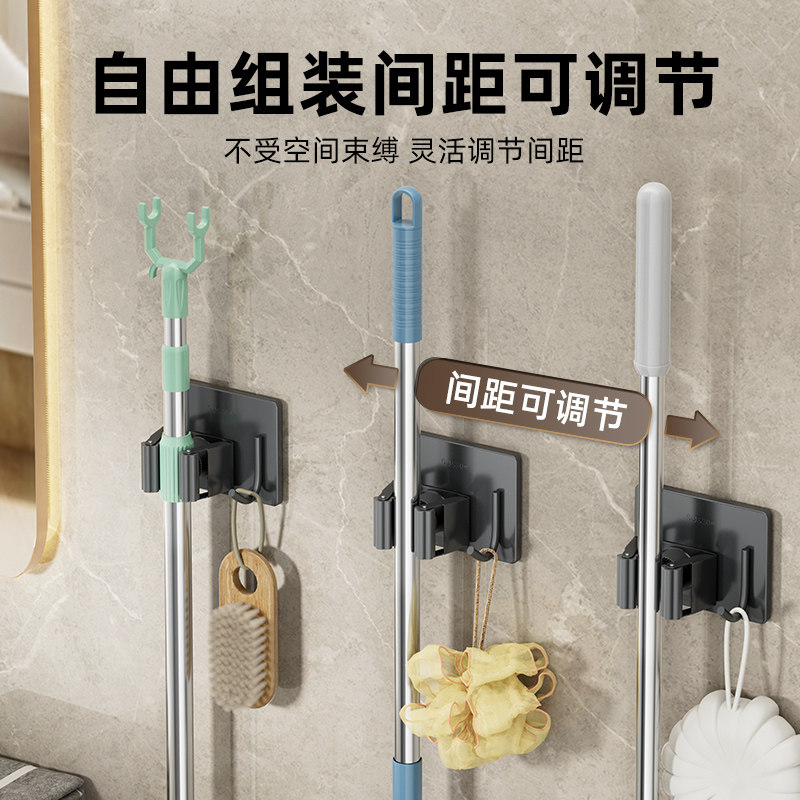 Mop Hook Free punch with powerful washroom hanging mop Divine Instrumental Bathroom Wall Hanging Sweep Grip mop frame buckle-Taobao