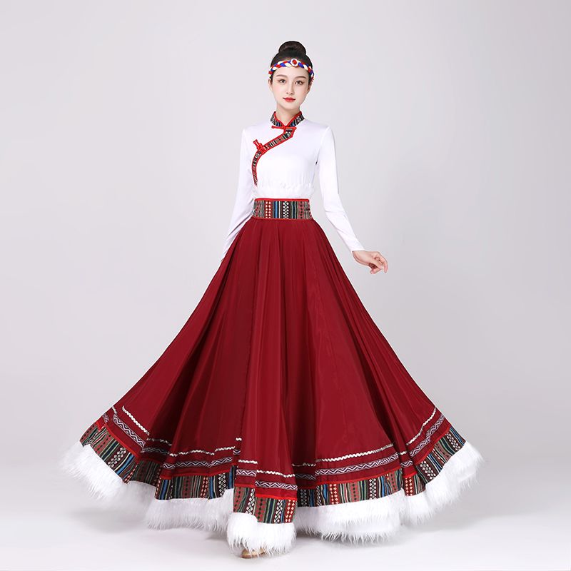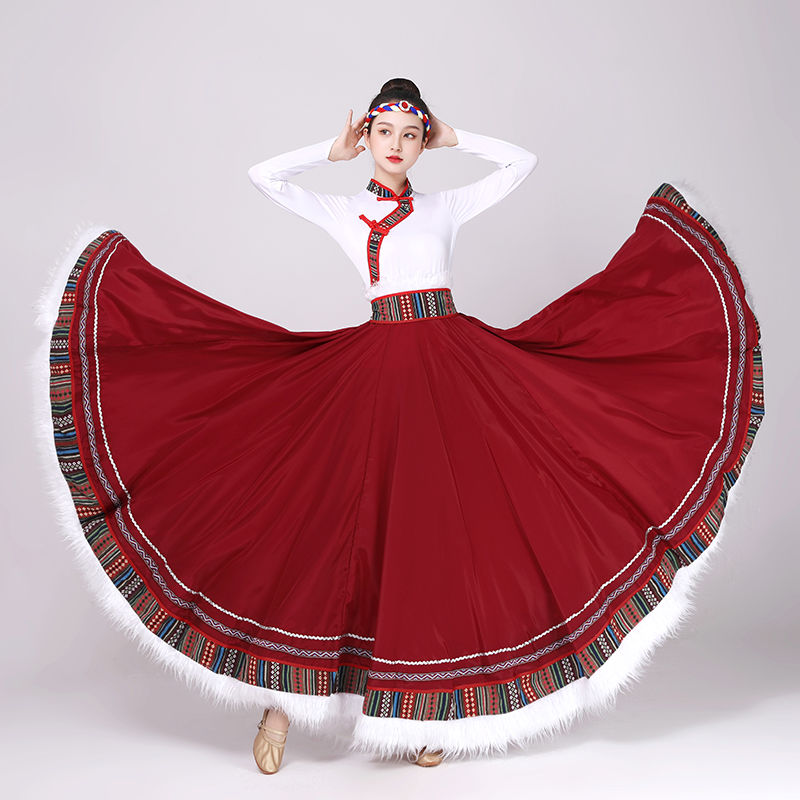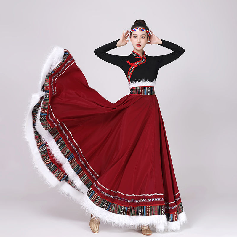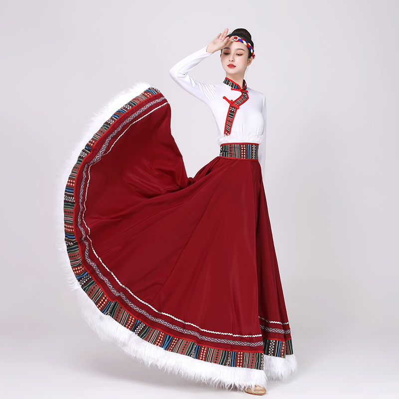 New Tibetan Act Out of Concealed Practice Costume for Skirt Examination Class Performance Serve Square Dance National Wind Big Swing Dress Whole-Taobao