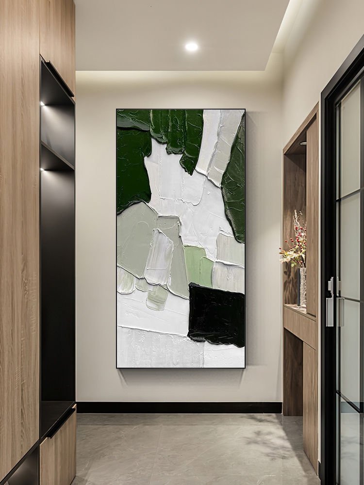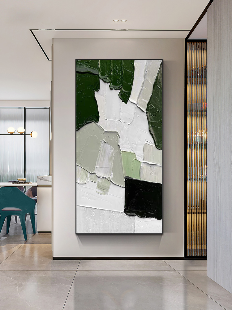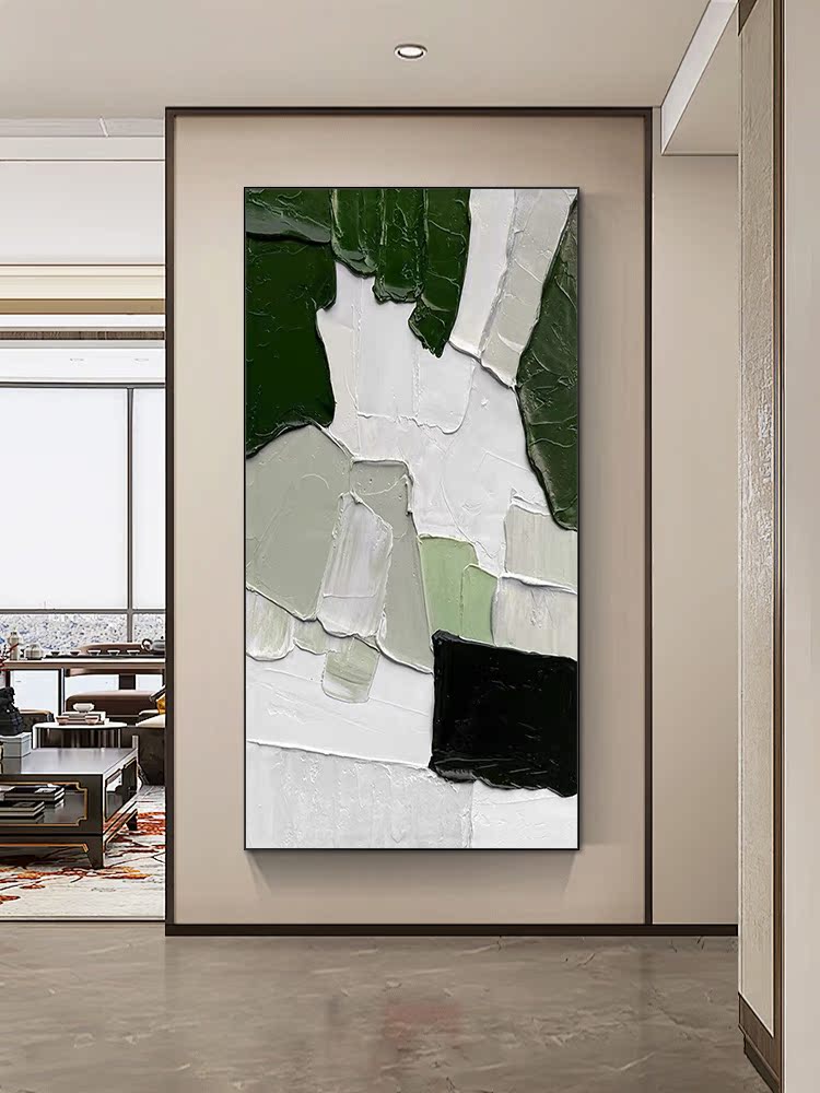 Entrance Xuanguan Abstract Ink Green Hand Painted oil painting Aisle Hallway Solid Decoration Painting Light Extravagant Advanced Sensation Hanging Painting-Taobao