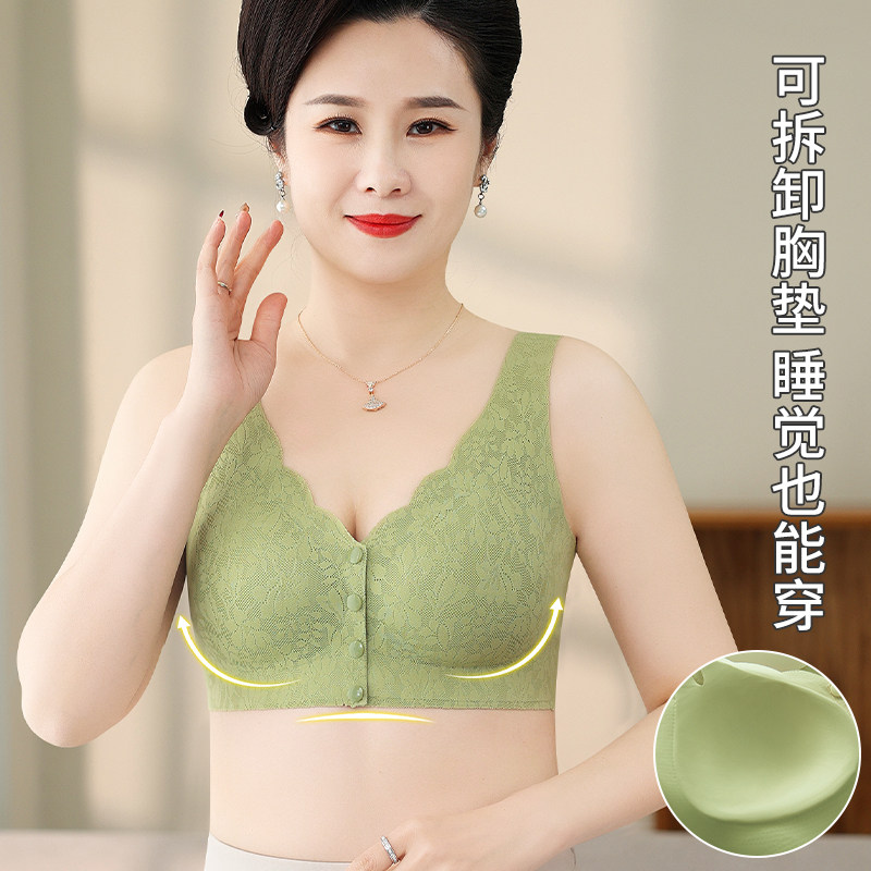 Mom lingerie female vest type No steel ring to woo middle-aged women seniors Side collection special front buckle No marks bra-Taobao