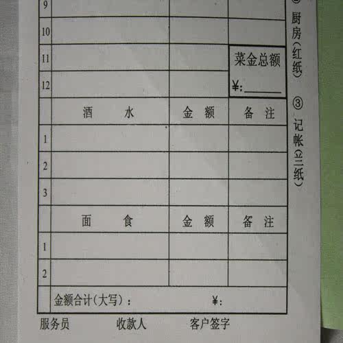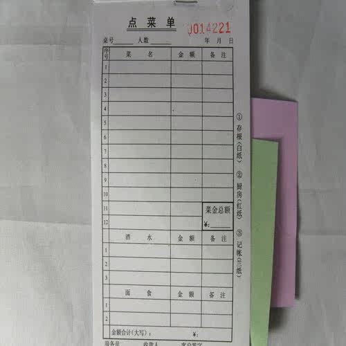 Triple no carbon-point menu triptych menu for 20 copies 17X9 5 cm