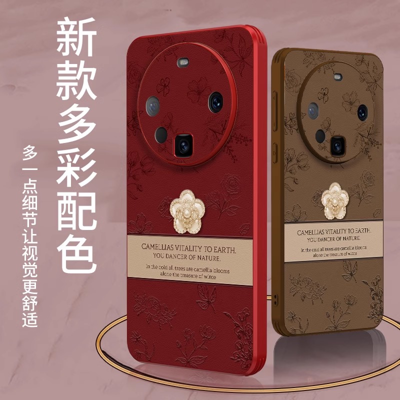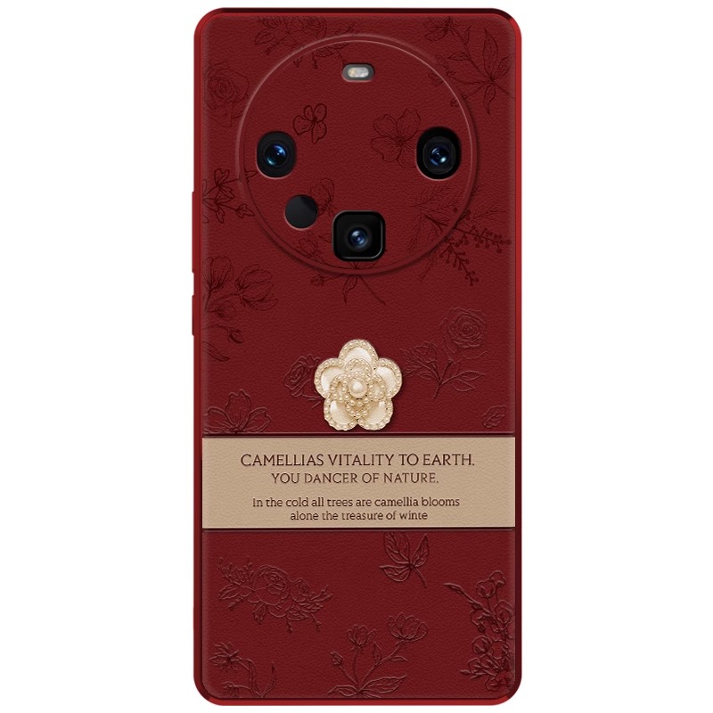 Suitable for Huawei mate60pro mobile phone shell wine red printed mountain tea flowers p50 40 light and luxurious senior feel-Taobao