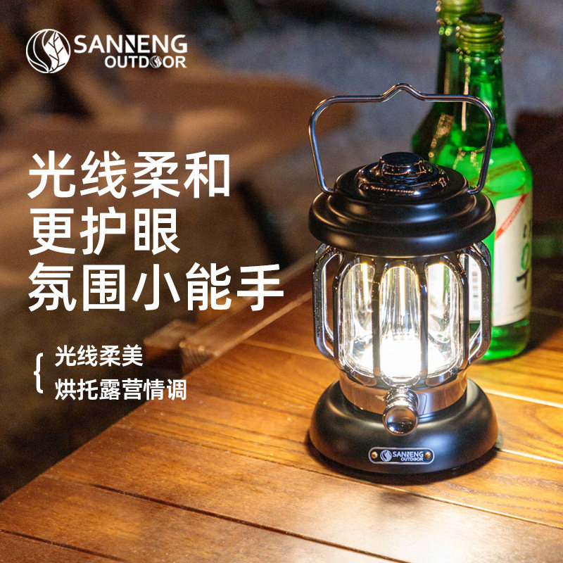 Triple Energy Outdoor Retro Camping Light Outdoor Tent Waterproof Long Sequel Charging Endless dimming camping Horse light-Taobao