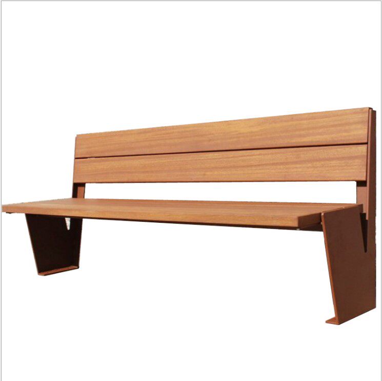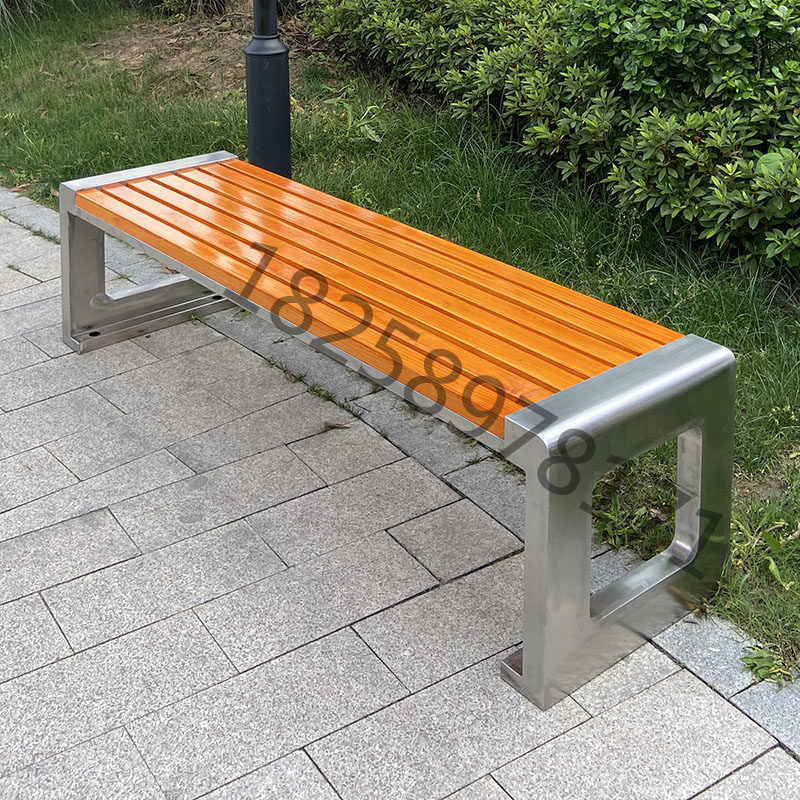 Set to make 304 stainless steel outdoor solid wood strip seat Embalming Wood Casual Park Chair Bench Chair Landscape Stool-Taobao