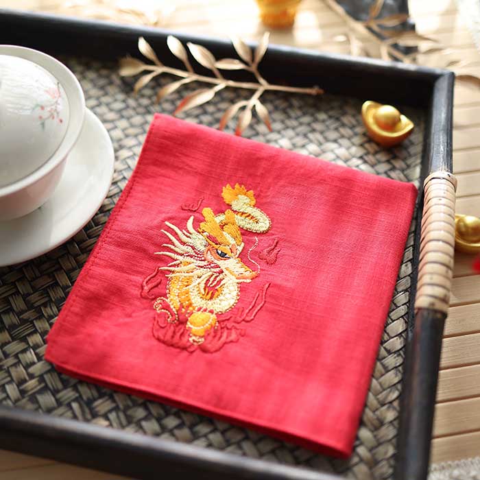 Zodiac Dragon Year Embroidery China Wind Pure Cotton Handkerchief Pascan Embroidered 2024 New Year's Gift Men's Carry-on Silk-Taobao