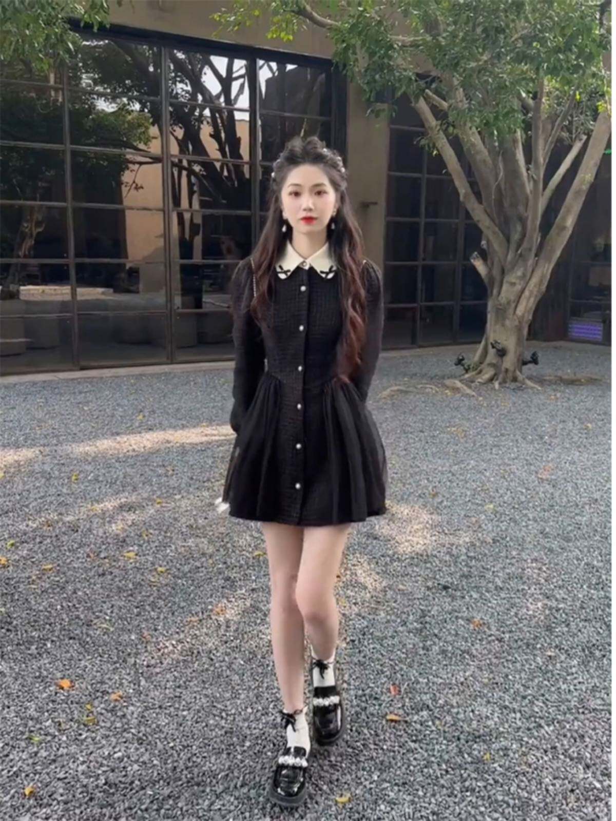 Fação Advanced Senses Dolls Collar Small Channelian Dress Woman 2023 Fall New Skirt Woman Dress Black Fluffy Skirt-Taobao