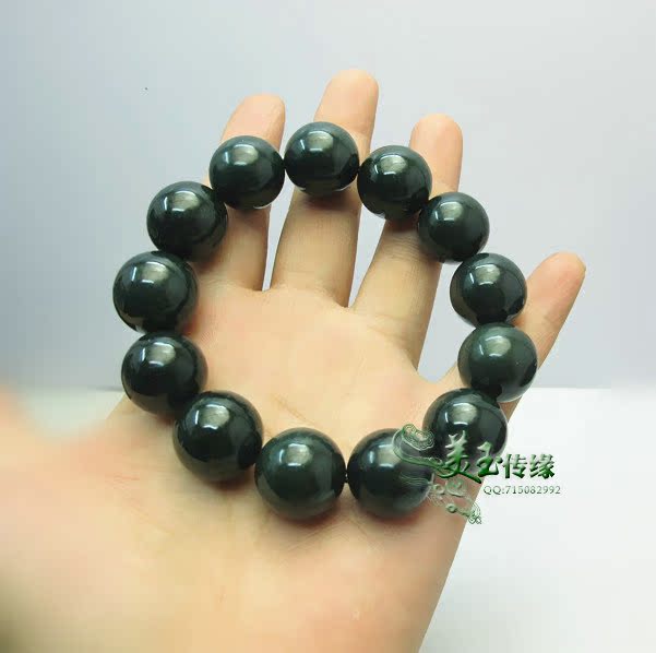 With certificate men's black green ink seed stock raw stone big round hand refining Xinjiang and Tian Yuhand