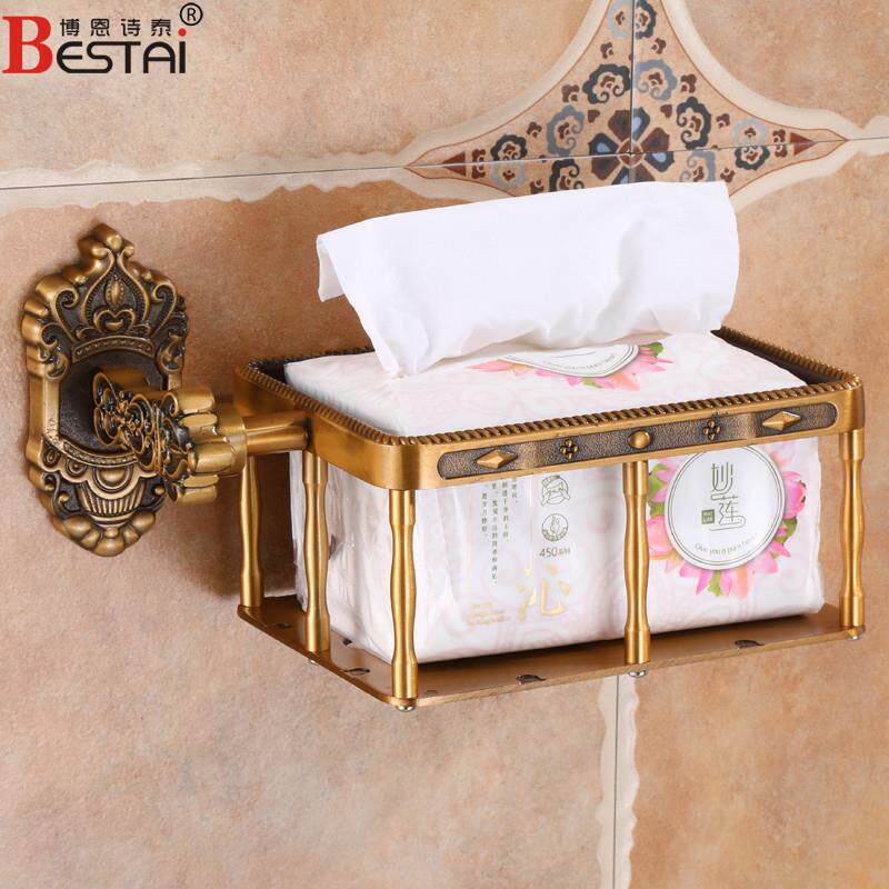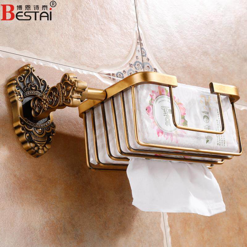 Free-to-punch toilet shell-shelf wall-mounted space aluminium paper toilet paper rack European style bathroom antique paper towels cardboard box-Taobao