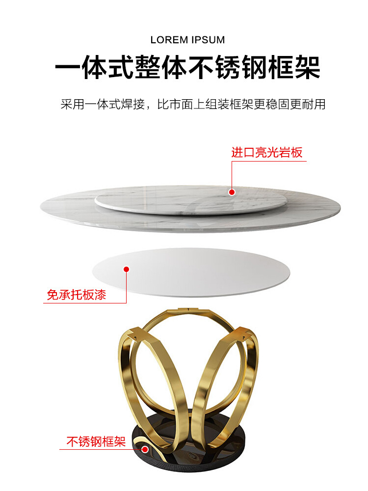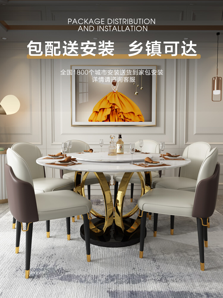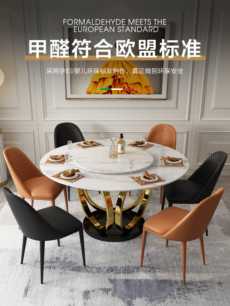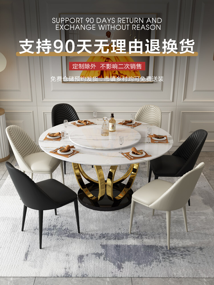 Bright Light Rock Plate Dining Table Home Small Family Type Round Table Modern Minima Light Extravagant Dining Table Nordic Turntable Round Table-Taobao