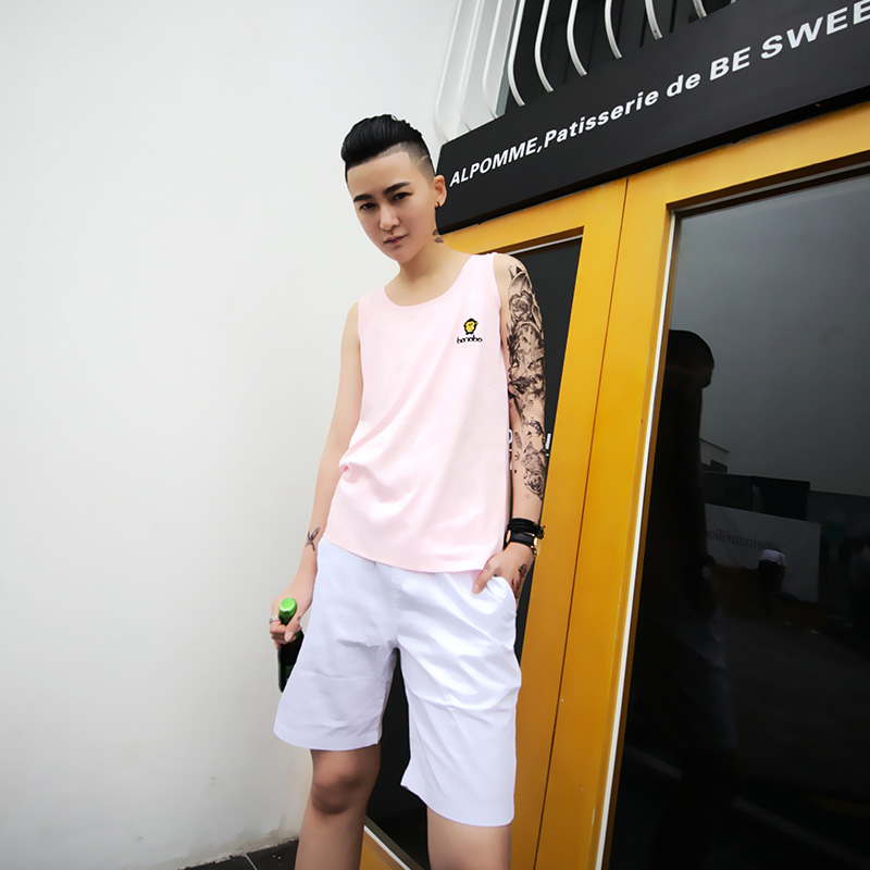 Shu Shu les drawstring chest long version outside wearing t loose vest bandage female handsome t handsome underwear fat fitness clothes tie chest shrink chest