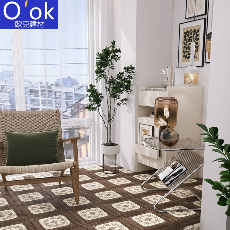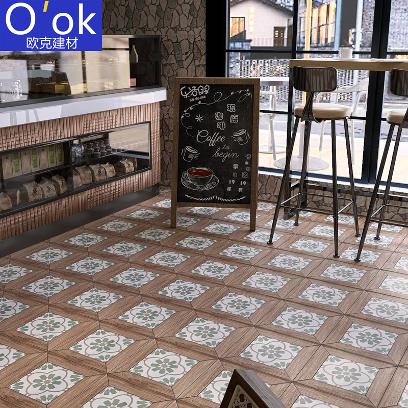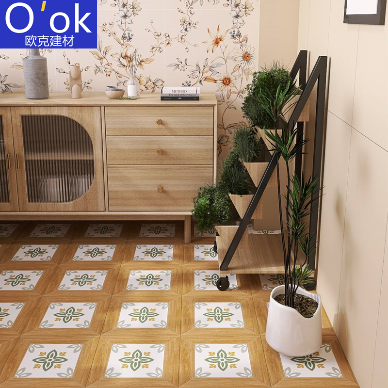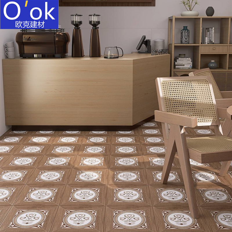 Fa-style retro wood grain flower brick 300x300 kitchen balcony anti-slip floor tiles Restaurant Minjuku garden patio tiles-Taobao