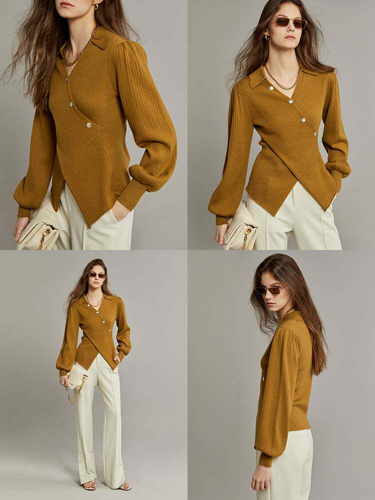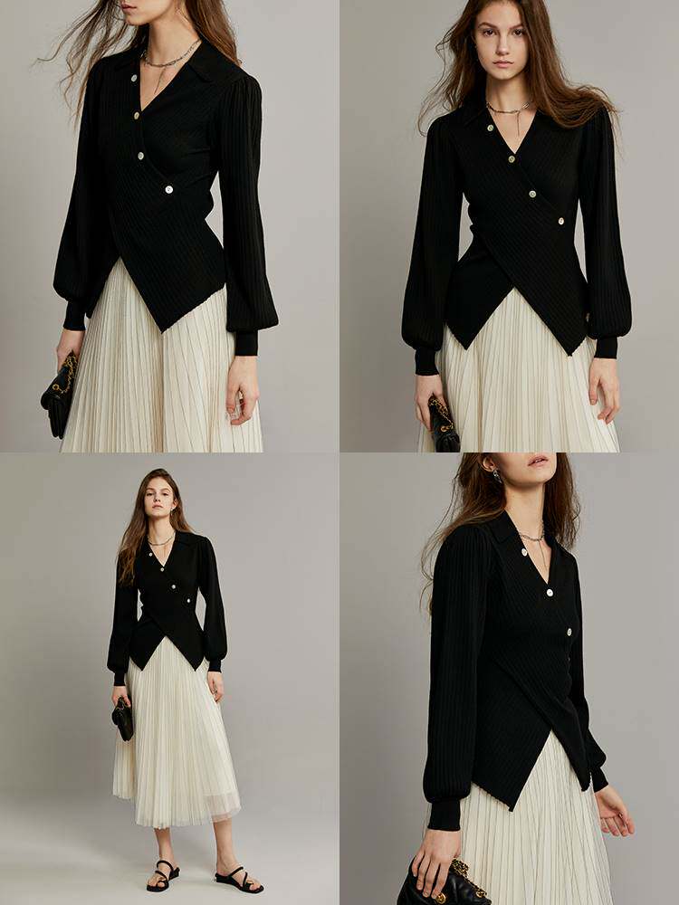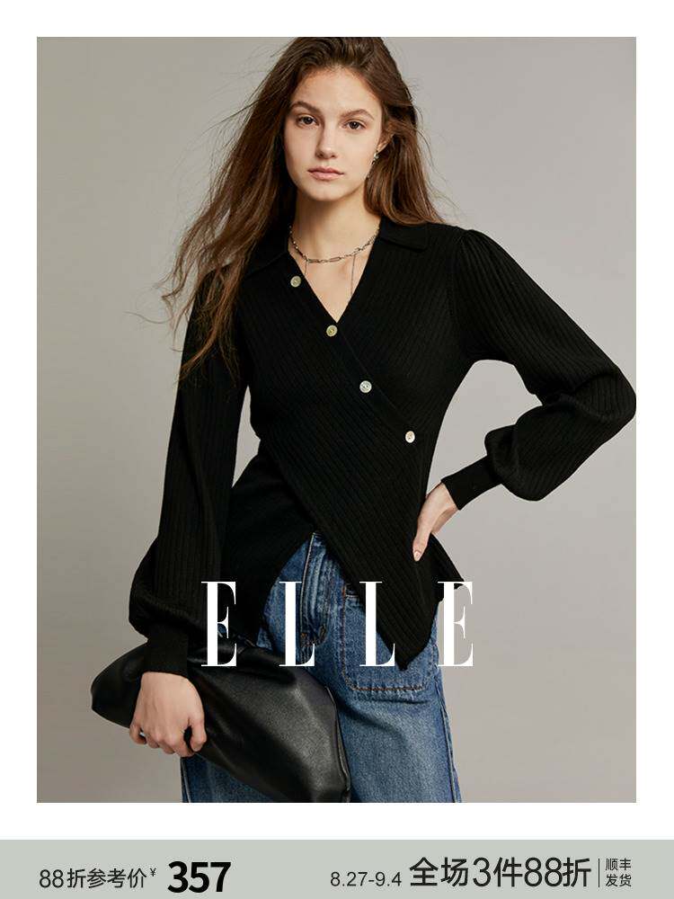 Manufacturer ELLE retro black V collar jacket head long sleeve sweater woman 2023 fall new loose hair knit-Taobao